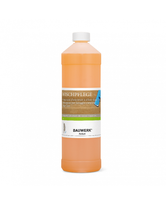 Procéder à un nettoyage à sec du sol (aspirateur ou chiffon à poussière) avant toute utilisation. Diluer le concentré d’entretien Bauwerk dans l’eau de nettoyage. Veiller à respecter les consignes d’utilisation supplémentaires figurant sur le bidon.